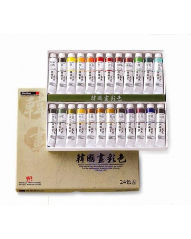 Hagyo medium for Korean Colors : ShinHan Painting Glue for Professionals is a medium intended for use in color mixing. A water based glue processed from liquefied gelatin, it is used for painting thickly on hanji, traditional Korean paper handmade from mulberry trees. Its transparency is very important in protecting the chroma and value of colors mixtures. To ensure the preservation of an artwork, combine one part glue with one part water when using the following colors (White, Yellow Light, Burnt Sienna, Yellow Ochre, Opal Green, Ultramarine Blue, Light Blue Violet, Orange, Lemon Yellow Pale and Raw Sienna) For other colors, mix one part glue with two parts water.