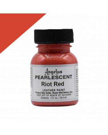 Angelus Pearlescent Paint Riot Red 451 1 Oz (29.5ml) :   More than 100 brilliant, opaque colors used for decorating, staining, and edging smooth leather, pleather and some vinyl articles. Ideal for painting special areas on western boots, belts, tennis shoes, purses, jackets, saddles etc.  This paint is the top of the line for artists who work with and customize leather.Guaranteed by Angelus to not peel, crack, or rub-off, when dry. Condition of use: applying paint with a little brush, a sponge or an aerograph. Let dry between the 2 ply.  For a better result make sure that leather is clean before painting. For a strong paint and bright colors add a ly of "neutral color" or a "special varnish for leather’s paint Angelus". And if you want a finishing which looks like unglossy, you can use "Angelus duller" in your mixture. Before wearing your clothe, shoes, bag… painted make sure it is well dry. Be carefull about some of your items. They can have a finishing in silicone. In this case wash them with "Angelus prepare & deglazer", otherwise it could happen problems during the paint’s applying.
