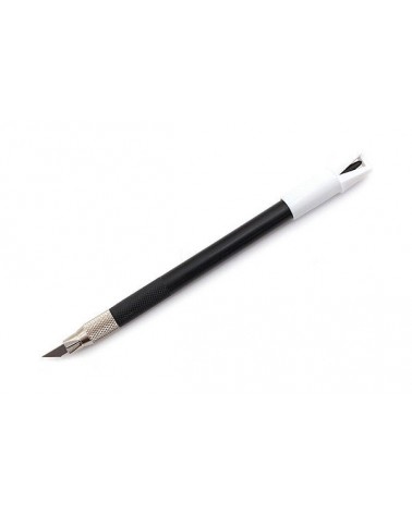 Deleter cutter : This specialized knife is designed for detailed work. Its small blade is perfect for cutting the red or blue painter masking tapes. The oposite is very helpful when you want to apply again if the tape comingof . This set includes a knife body, 6 blades, and a safety cap.
