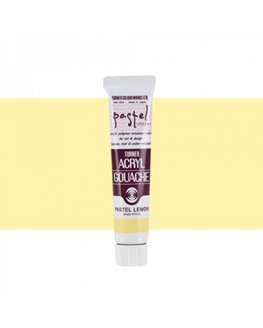 Turner Acryl Gouache 20ml Pastel Lemon : Turner Acryl Gouache is a highly-pigmented opaque paint which can be thinned with water but which dries quickly to a water-resistant, matte finish. Versatile it can be applied on many surfaces. This is a 20ml tube of Pastel Lemon 180, one of nine metallic colours in the Acryl Gouache range.