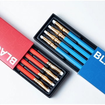 Our Blacwing red pencil features a vivid red core that's perfect for marking, editing, and sketchning. It also includes a matte red barrel, gold ferrule, white imprint and eraser. Each set contains 4 red pencils.