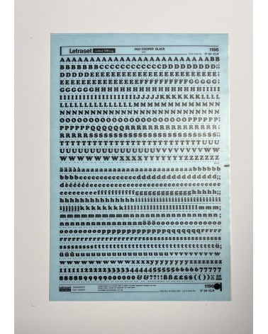 letraset-1115- COMPACTA BOLD - 120pt : Letraset was a company known for manufacturing sheets of typefaces and other artwork elements using the dry-transfert lettering method. This dry rub down transfer technique was used by the punk movement because of its ease of manipulation and quality of the rendered layout. They could create designs independent from printers and publishers.