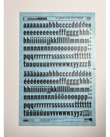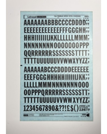 letraset-1523- BOOKMAN BOLD ITALIC - 72pt : Letraset was a company known for manufacturing sheets of typefaces and other artwork elements using the dry-transfert lettering method. This dry rub down transfer technique was used by the punk movement because of its ease of manipulation and quality of the rendered layout. They could create designs independent from printers and publishers.