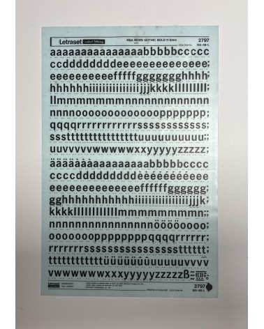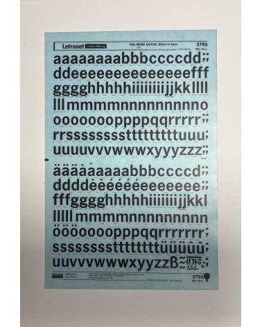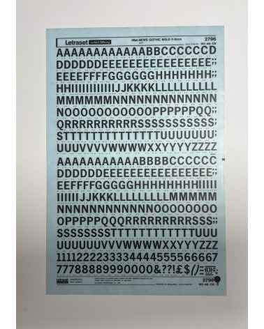letraset-2769- OPTIMA BOLD -60pt : Letraset was a company known for manufacturing sheets of typefaces and other artwork elements using the dry-transfert lettering method. This dry rub down transfer technique was used by the punk movement because of its ease of manipulation and quality of the rendered layout. They could create designs independent from printers and publishers.