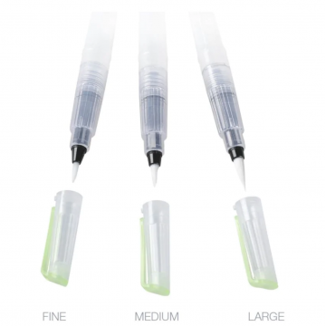 Artmate 3 Assorted Tip Tank Brush Set - 5ml : Get 3 water brushes for the price of 1 ! The 3 types of tips : Fine, Medium and broad will allow you to adapt your strokes and details to your drawings. Fill your brushes with Ink or Water (Not Indian ink). If your looking for great black ink you can refill them with the Higgins Black magic or the Japanese black inks you will found in the category Drawing / Ink.... Please note that you can get a wholesale price on this product when buying more than 100 Set