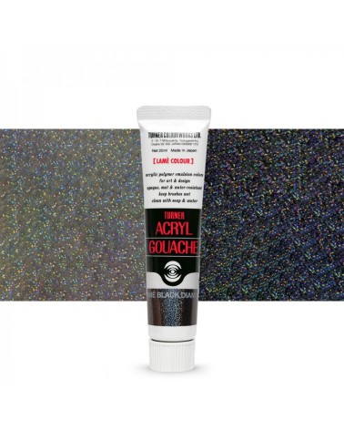Turner Acryl Gouache is a highly-pigmented opaque paint which can be thinned with water but which dries quickly to a water-resistant, matte finish. Versatile it can be applied on many surfaces. This is a 20ml tube of Lame Black Diamond 231, one of nine metallic colours in the Acryl Gouache range.