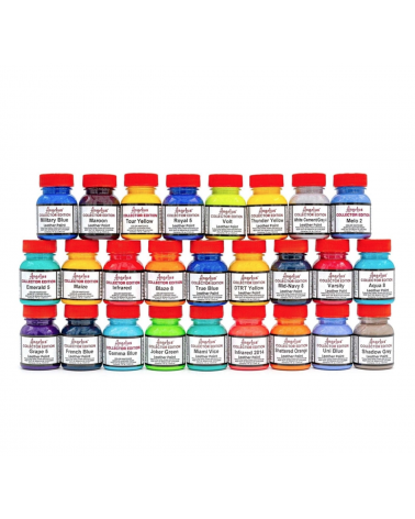 Save BIG when puchasing the entire line of Angelus Collector Edition paints. Beef up your art supplies with our complete Collector Edition Kit, Featuring 26 colors of Angelus world-renown acrylic leather paint.