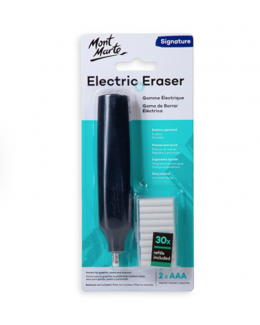 Get a great deal with this battery operated eraser coming from the same factory producing for Derwent. This eraser helps you to erase with pinpoint accuracy and precision. You can correct small areas cleanly and quckly. Also often use for "Highlighting" graphite pencils. The round eraser strand not only rotates lengthwise, but also vibrates very slightly, creating an optimal erasing effect. The eraser cord is easy to pull out and replace.