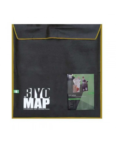 Biyomap maximum art protection cases 40x50cm - light blue : The BIYOMAP Art Protection Case was thoughtfully designed by artists — and it shows! A space-saving solution that provides durable protection while transporting and storing your art, BIYOMAP is also an environmentally sound alternative to plastic bubble wrap. Made from a water-resistant, breathable, acid-free material, BIYOMAP cases are economical, reusable, and recyclable. Available in 10 popular sizes, each size is easily distinguished by a color-codedborder. A transparent pocket on the outside allows visibility of contents and other important information. All but the three largest sizes (55" × 63", 63" × 82", and 82" × 82") come with detachable hook-and-loop handles for easy transporting.