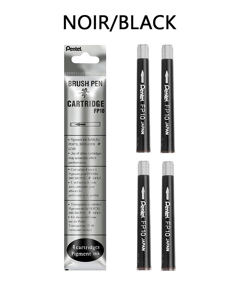 Pack of 4 cartridge refills for the Pentel Brush Pen. Pigment ink is water and fade-resistant.