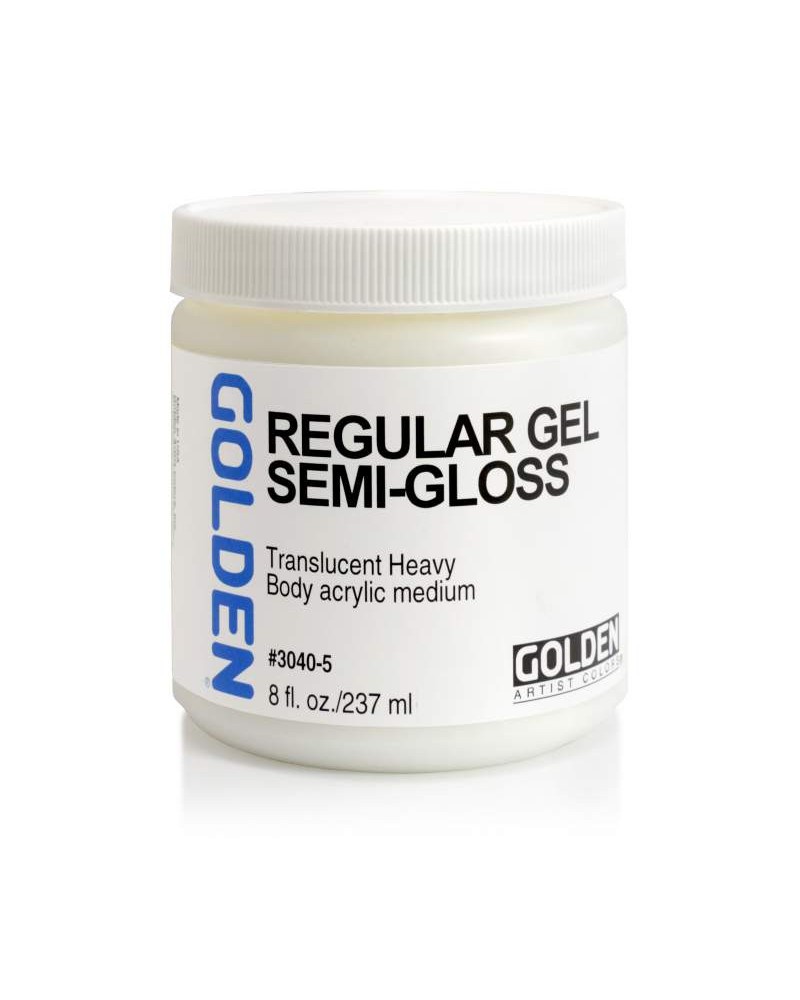 Same creamy consistency as Golden Heavy Body Acrylic colours. Ideal for extending paint and regulating translucency without changing the consistency of the Heavy Body and Matte colours. Hold moderate peaks and texture. The Regular Gel Gloss is ideal for glazing and other techniques where transparency is desired.