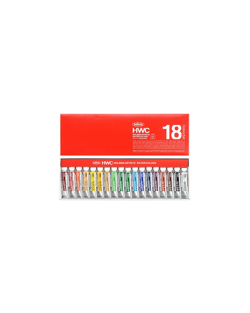 You want to try the famous Watercolors from Holbein ? This set is a good option with small sizes tubes. A selection of 18 colors are available :