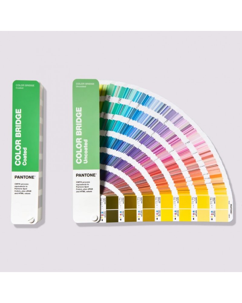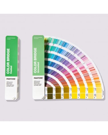 See the true results of converting a Pantone Spot color to its process color equivalent with the Pantone Color Bridge Guide Set. Compact fan decks provide easy access to side-by-side comparisons of all 2,359 Pantone Spot Colors, including 224 brand new Pantone Matching System (PMS) colors, with their closest industry-standard CMYK color matches, as well as HTML and RGB equivalent values for digital design applications. . Guides are printed on coated and uncoated paper stocks to match G-7 calibrated CRPC6 and CRPC3 press references. Confidently manage and visualize color expectations, color conversion, and color matching when printing across graphics, digital design, web, animation, and video platforms.