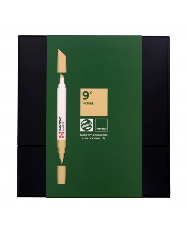 This set contains 9 Talens | Pantone markers and comes in a sturdy box with a sleek, horizontal design, ensuring your markers are always ready to use with optimal ink flow to both nibs. Thanks to the color names and numbers on the caps, you can easily pick the right color for your work.