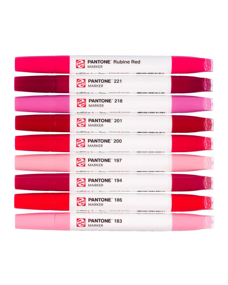 Contents : 9 Talens | Pantone markers - Cool red 183 - 186 - 194 - 197 - 200 - 201 - 218 - 221 - Rubine Red