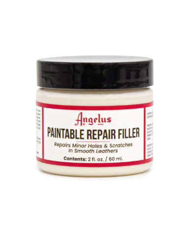 Angelus Paintable Repair Filler is perfect for repairing minor holes & scratches in smooth leather. This leather filler is mixable with Angelus Leather Paints to aid with seamless repairs. Can be used to repair holes and scratches in most sneaker midsoles. Dries to a flexible finish to help prevent future cracks and tears.