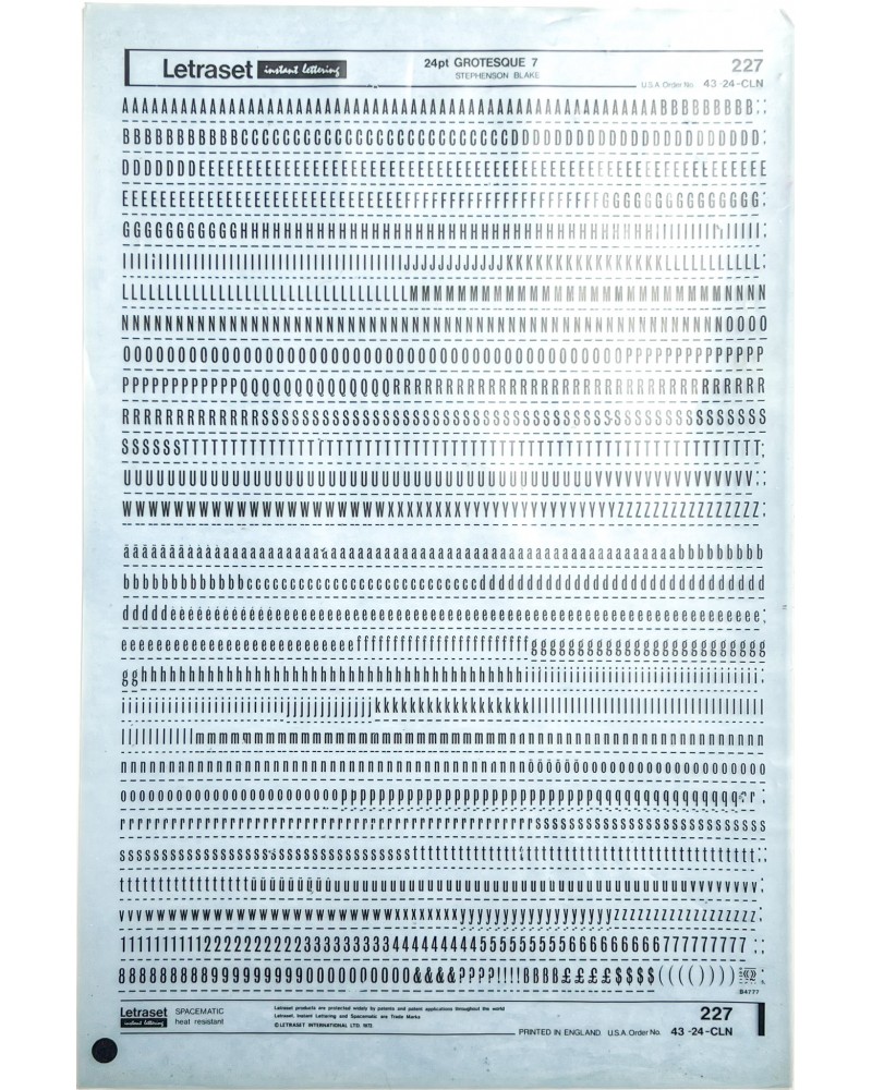 Letraset was a company known for manufacturing sheets of typefaces and other artwork elements using the dry-transfert lettering method. This dry rub down transfer technique was used by the punk movement because of its ease of manipulation and quality of the rendered layout. They could create designs independent from printers and publishers.