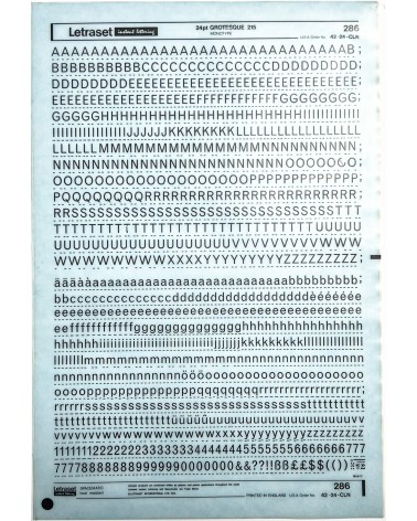Letraset was a company known for manufacturing sheets of typefaces and other artwork elements using the dry-transfert lettering method. This dry rub down transfer technique was used by the punk movement because of its ease of manipulation and quality of the rendered layout. They could create designs independent from printers and publishers.