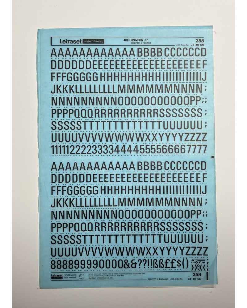 Letraset was a company known for manufacturing sheets of typefaces and other artwork elements using the dry-transfert lettering method. This dry rub down transfer technique was used by the punk movement because of its ease of manipulation and quality of the rendered layout. They could create designs independent from printers and publishers.