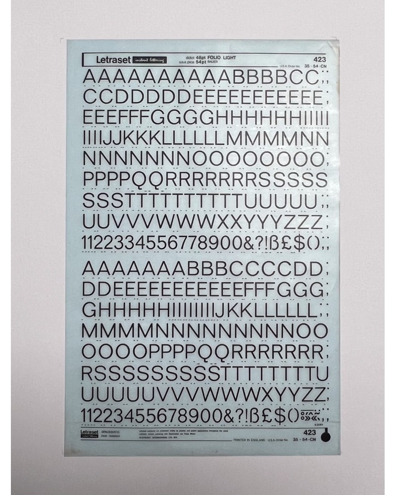 Letraset 423 - FOLIO LIGHT - 48/54pt