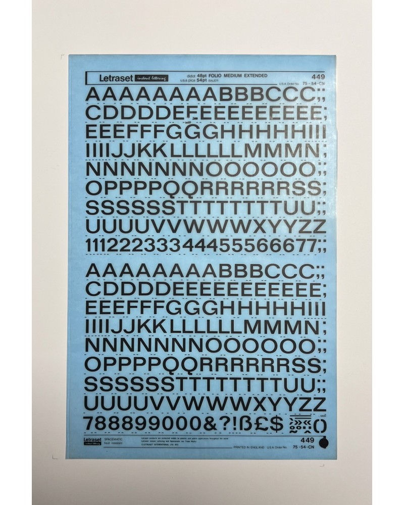 Letraset 449 - FOLIO MEDIUM EXTENDED- 48/54pt :