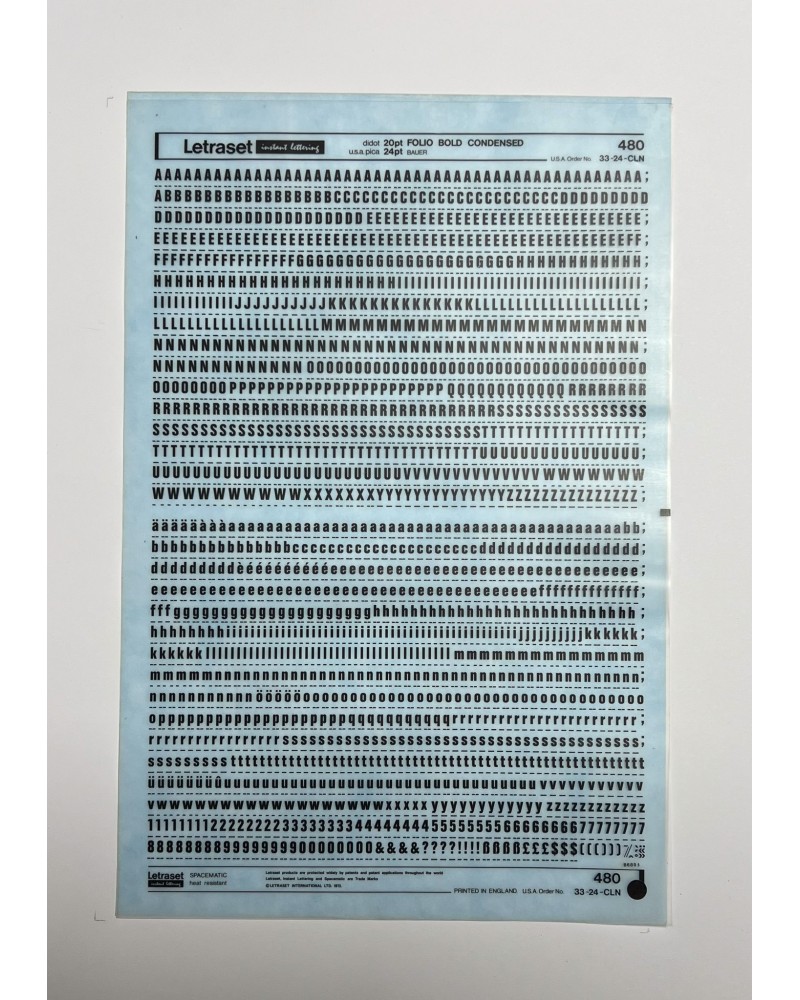 Letraset 480 - FOLIO BOLD CONDENSED - 20/24pt :