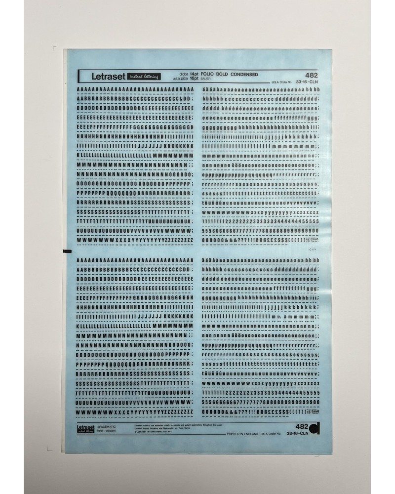 Letraset 482 - FOLIO BOLD CONDENSED - 14/16pt :