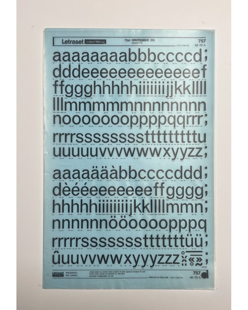Letraset was a company known for manufacturing sheets of typefaces and other artwork elements using the dry-transfert lettering method. This dry rub down transfer technique was used by the punk movement because of its ease of manipulation and quality of the rendered layout. They could create designs independent from printers and publishers.