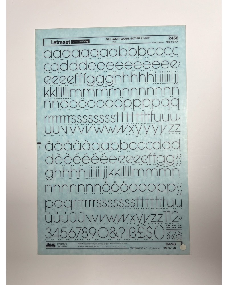 letraset-2458- AVANT GARDE GOTHIC X-LIGHT - 60pt
