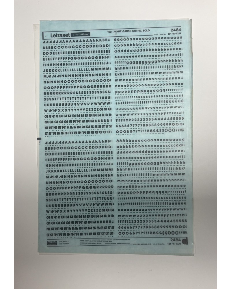 letraset-2484- AVANT GARDE GOTHIC BOLD - 16pt :