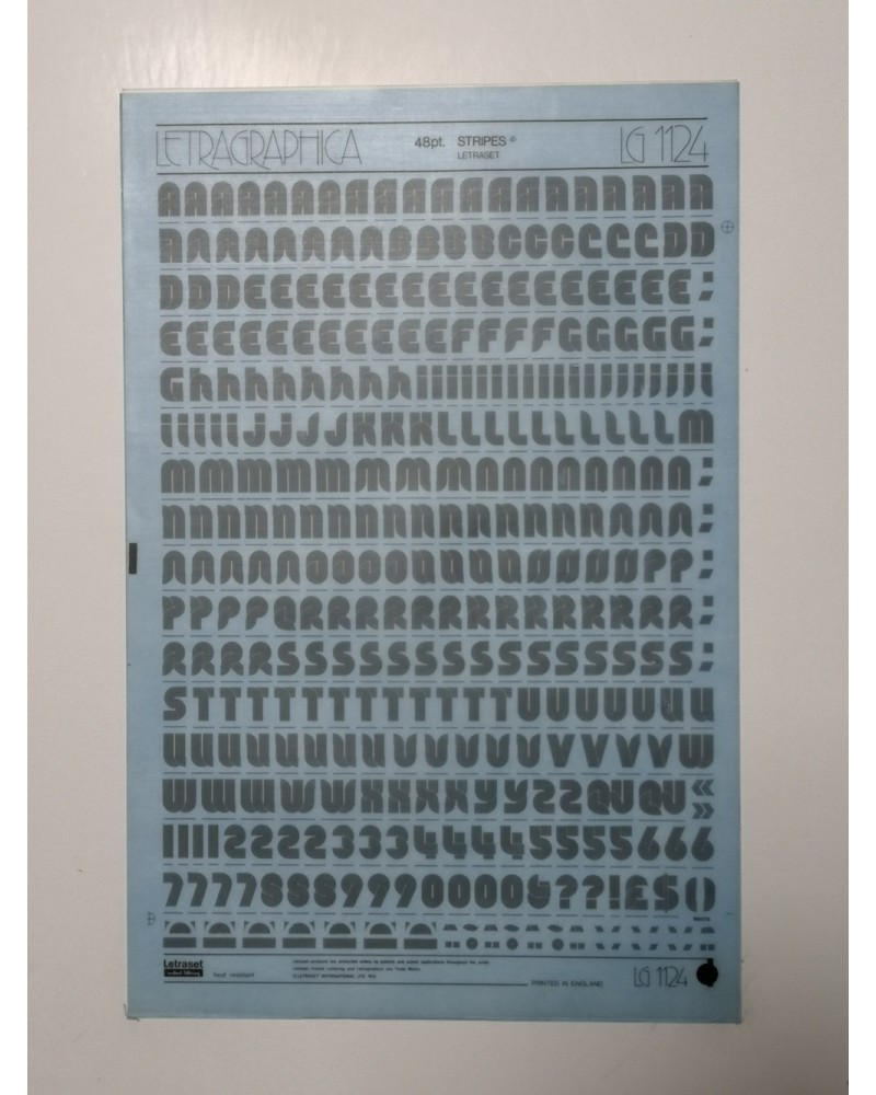 Letraset was a company known for manufacturing sheets of typefaces and other artwork elements using the dry-transfert lettering method. This dry rub down transfer technique was used by the punk movement because of its ease of manipulation and quality of the rendered layout. They could create designs independent from printers and publishers.