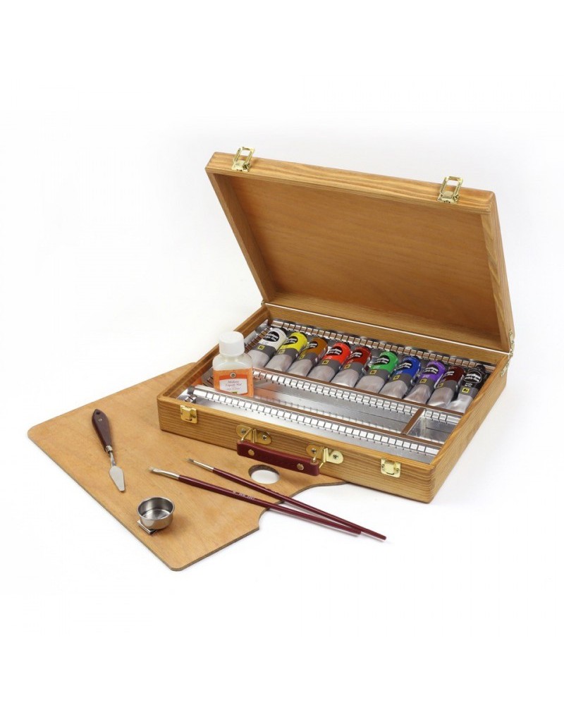 Wooden box extra-fine Acrylia - 10 tubes and accessories.