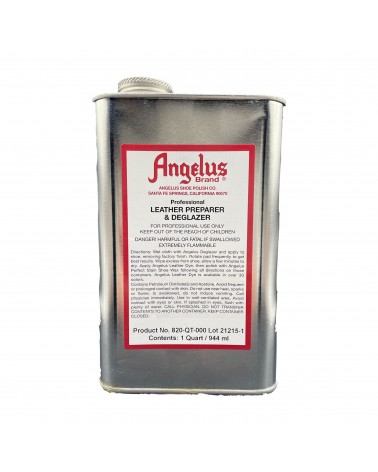 Angelus Leather Preparer and Deglazer 118ml : El preparador removedor es especialmente disenado para limpiar en profundidad el cuero,con el fin de prepararlo a ser pintado.Esta etapa es igual de importante para un cuero nuevo como para un cuero usado pues algunos articulos tienen un acabado en silicon ya aplicado en fabrica. Estos risiduos quimicos que provienen de la manufactura pueden influir sobre la captura corecta de la pintura sobre el cuero.Si el cuero no es escrupulosamente limpiado antes la etapa de pintura,las probabilidades que la pintura se desmorone en el futuro aumenta con sensatez .