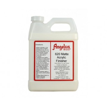 El "Angelus Acrylic Finisher Matte 620" acabado Mate puede ser utilizado sobre los cueros lizos.Ideal para proteger un trabajo realizado con la pintura especial para el cuero Angelus.Aplicar simplemente con una esponja,un trapo o un aerografo.No hace falta lustrar despues.Este barniz acuoso se limpia con agua y javon. Una vez seco, el " Angelus Acrylic Finisher" es impermeable,no se rompe y no se desata de su soporte. De echo es bastante flexible para los calzados,los cinturones, los bolsos de mano.