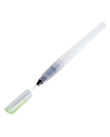 Pinceau à réservoir d'eau ou encre Pentel Taille moyenne : Encore une inovation en provenance du Japon. Ce pinceau fonctionne sur le principe du pinceau à cartouche d'encre inventé par Pentel, sauf que sur ce modèle, la réserve est vide, et rechargeable avec tout liquide diluable à l'eau : aquarelle, pastel, gouache – Il suffit de dévisser ce réservoir, qui constitue le corps du pinceau. Avec de l'eau, il peut vous permettre de travailler l'aquarelle rempli d'encre il devient un outils pour le dessin et la calligraphie. C'est également le partenaire idéal des craies a la cire aquarellable Neocolor2 comme sur la vidéo.