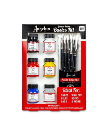 Este kit basico de pintura Angelus incluye las herramientas y accesorios necesarios para comenzar a crear obras de arte o restaurar tu calzado de piel
