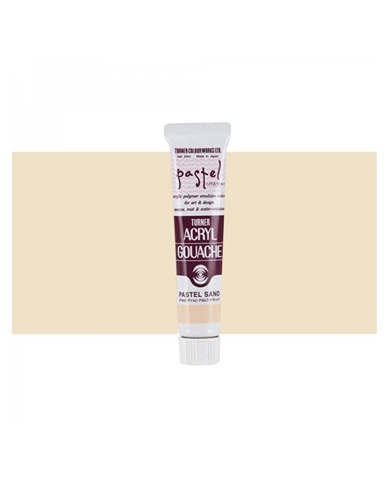 Turner Acryl Gouache es una pintura opaca altamente pigmentada que se puede diluir con agua pero que se seca rápidamente para obtener un acabado mate resistente al agua. Versátil, se puede aplicar en muchas superficies. Este es un tubo de 20 ml de Arena Pastel 174, uno de los nueve colores metálicos de la gama Acryl Gouache.