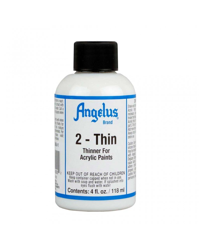 2-Thin es perfecto cuando necesitas diluir nuestra pintura Angelus. Evita que la pintura en sus sneakers se aglomere en una superficie de malla, y es excelente cuando usa un aerógrafo para su personalización.