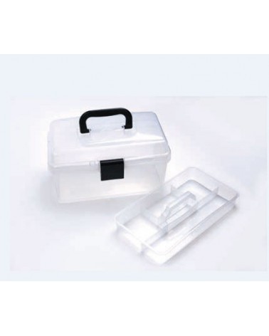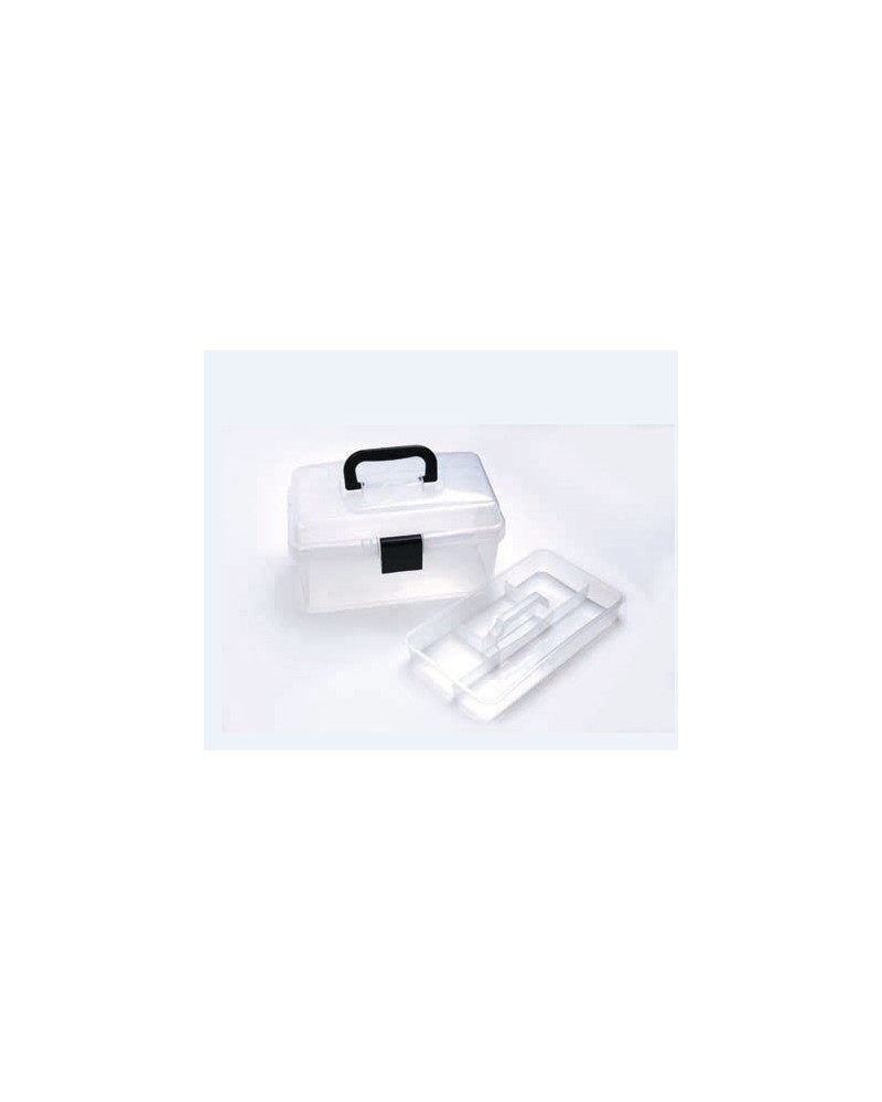 Caja de transporte ligera, para material artístico, ocio creativo y artesanal, perfecta para los colores Angelus. Esta caja, diseñada en plástico transparente, permite ver rápidamente su material.