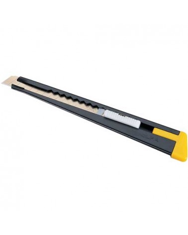 Cutter avec lames sécable de 9mm. Modèle standard. Léger, le manche du cutter et le guide-lame sont entièrement en acier laqué noir mat. Avec clip et embout casse lame. Longueur 138mm. C'est Yoshio Okada, fondateur de Olfa Corporation basé à Osaka, au Japon, qui est l'inventeur du cutter. C'est avec le dénommé "Snap-Off" que cette invention de 1956 va se répandre mondialement. Celui-ci deviendra par la suite le standard des cutters. Ce qui fait également d'Olfa une marque reconnue, c'est la qualité supérieure de ses lames. Ce savoir faire des lames artisanales et techniques date de plusieurs siècle au Japon. Olfa utilise la meilleure qualité d'acier est utilisé, ajustement de la dureté, netteté des angles, dimensions coniques, vitesse de broyage, etc. Voici ce qui apporte une lame Olfa.