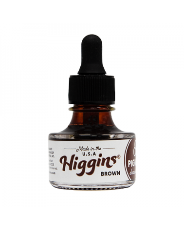 Menos conocida que sus hermanas "Black Star Ink", la tinta mágica negra de Higgins es, sin embargo, una referencia en el mundo de los diseñadores de cómics profesionales en los Estados Unidos. La tinta Black Magic es simplemente la mejor tinta producida fuera de Asia. De secado ultrarrápido y perfectamente indeleble tanto con agua como con rotulador al alcohol Touch o Copic. Es posible trabajar con Higgins Black Magic con pinceles pero también con bolígrafo y aerógrafo. La tinta es muy fluida, incluso puede llenar los cepillos de depósito Pentel o Kuretake (vea la segunda imagen). Su acabado es mate como las tintas japonesas, resistente a la luz y Ph Neutro. En resumen, Higgins ha creado una tinta casi perfecta.