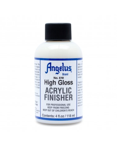 Finisher Angelus 600 118ml :  El "Angelus Acrylic Finisher 600". Ideal para proteger un trabajo realizado con la pintura especial para el cuero Angelus.Aplicar simplemente con una esponja,un trapo o un aerografo.No hace falta lustrar despues.Este barniz acuoso se limpia con agua y javon. Una vez seco, el  " Angelus Acrylic Finisher" es impermeable,no se rompe y no se desata de su soporte. De echo es bastante flexible para los calzados,los cinturones, los bolsos de mano.