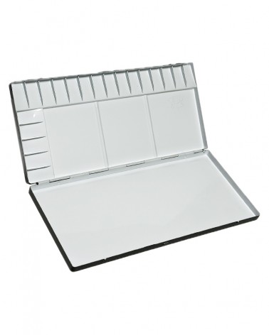 Introducing for the first time in Europe the Heung Il Watercolor Painting Aluminium Palette crafted with precision and designed to meet the needs of professional artists, this alumium palette is a must-have for any serious watercolorist. With 26 wells, it offers ample space for all your favorite colors, allowing you to mix and experiment freely. Made from high-quality aluminum, this palette is not only lightweight and durable but also easy to clean. Its smooth surface ensures that your paint won't stick, making it a breeze to blend and create stunning color combinations. Its compact size and lightweight construction make it easy to take with you wherever you go.