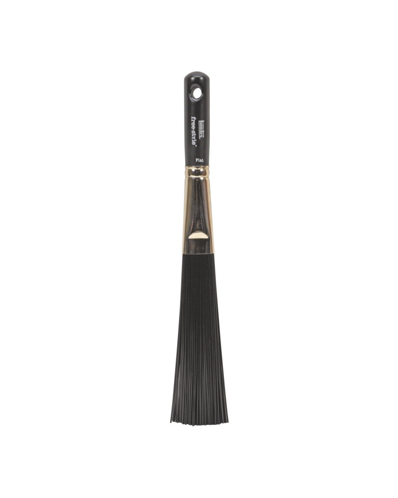 Virola y tornillo de acero inoxidable. Mangos antideslizantes, anchos y ergonómicos, con acabado mate. Disponible en redondo y en plano. Cepillo extralargo, ideal para los efectos de proyección.