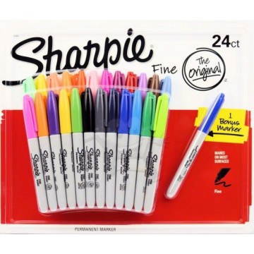 Set de 24 feutres Sharpie Fine point : EDITION LIMITE ELECTRO POP Le marqueur de réference depuis les années 70 aux Etats-Unis et en angleterre. Feutre à pointe fine très résistante à encre colorée permanente fonctionnant sur presque toutes les surfaces. Idéal en animation sur les feuilles Rhodoïdes et pour les marquages sur plastique. Encre à séchage rapide avec une formule non toxique certifiée AP. Set de 24 couleurs en fine point egalement un set en feutre pinceau (voir dans la partie Feutres pinceaux)