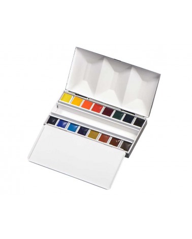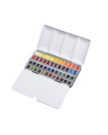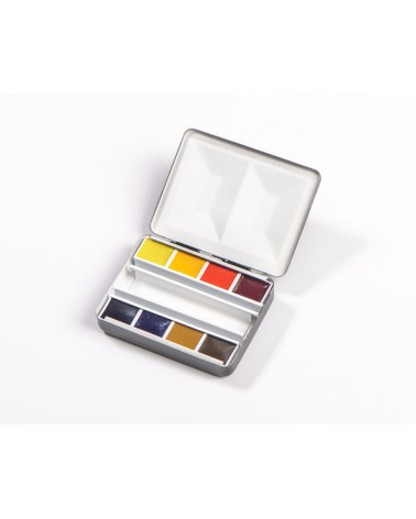 Boite d'aquarelle Blockx "Bijou" émaillée de 8 1/2 Godets : La peinture Aquarelle BLOCKX est toujours habitée de secrètes splendeurs et fabriquée "à l'ancienne", selon des lents et sûrs procédés ancestraux garantissant la plus fine qualité de la peinture. L'aquarelle BLOCKX est faite de pigments rares, résistants, très finement broyés, enrobés de gomme arabique et de miel. Elle se propose aujourd'hui dans 72 nuances du plus bel éclat. Nous vous proposons ici la magnifique petite boite "Bijou" émaillée de 8 1/2 godets.