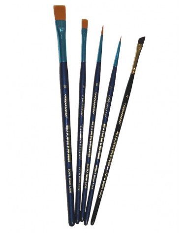 Set de 10 pinceaux nylon Premium : Notre meilleure offre pour peindre avec toute technique : Aquarelle, Acrylique, Vinylique, Huile, Gouache... Adapté a tout niveau. Ce lot comprend 10 pinceaux de 10 tailles et 4 formes différentes. Pointe ronde, usée bombé, plat et pointu. Leur manche court est en bois laqué et lisse en couleur Pale blue pour un meilleur contrôle du pinceau. Poils en PBT, doux, solide et faciles a nettoyer pour une utilisation fréquente. Longueur du manche : Entre 17.5 et 19.5cm Le set contient : 5 pinceaux ronds : 00, 1, 2, 3, 5 3 brosses plates : 2, 6, 5/8 2 brosses usées bombés : 4, 8