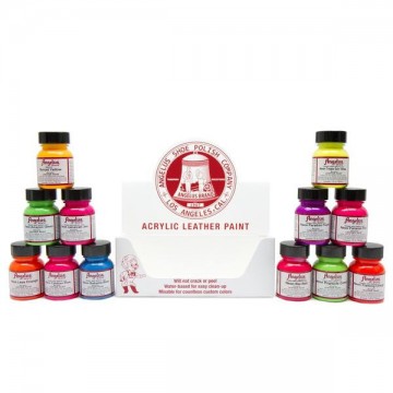 Kit de 12 couleurs Neon Angelus 29.5ml / 1oZ Popsicle green Tropic sun yellow Jamaican joy Lava orange Flaming orange Tahitian pink Rio red Paradise purple Amazon green Bahama blue Sunset yellow Parisian pink