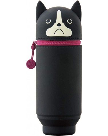 Trousse - Pot à Crayon Terrier de Boston Punilabo Lihit Lab Taille moyenne - A7714-8 : Trousse Kawaï et astucieuse en forme d'ours pour transporter et présenter vos crayons et stylos. Appuyez simplement sur le bas et votre trousse se trasnforme en pot à crayons qui se maintient debout sur votre bureau. Son design avec sa coque en silicone à obtenu le premier prix à l'ISOT 2016. Le petit plus un élastique placé à l'intérieur de la tête permet de tenir à part une gomme ou une clée USB. Votre annimal préféré ne vous quittera plus. 19 modèles d'animaux disponibles ! Taille : 7x7x21cm  Contient environ 22 stylos