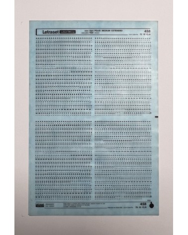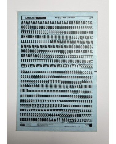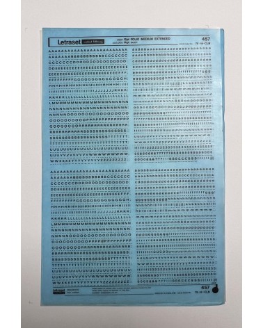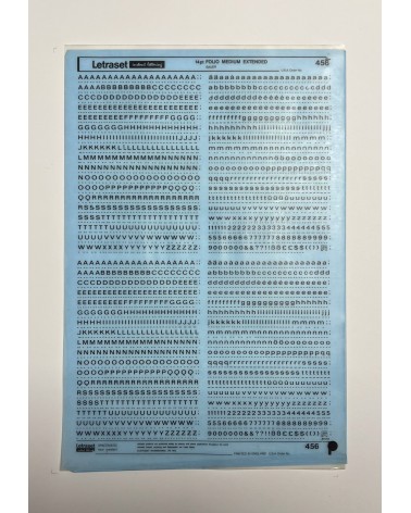Letraset 454 - FOLIO MEDIUM EXTENDED- 20/24pt : Feuilles en plastique sur lesquelles sont surimprimés des lettres et des symboles que l'on peut décalquer. Utilisées, entre autres, par les créateurs de fanzines, et les punks en raison de leur facilité d'utilisation et d'un excellent rendu graphique s'affranchissant ainsi de l'imprimerie industrielle.